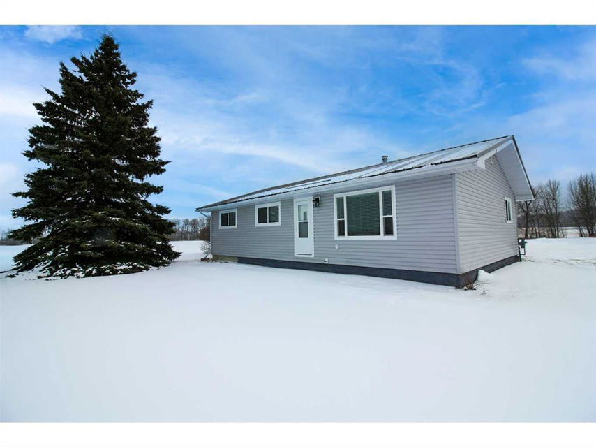 This charming bungalow-style home is nestled on a 14.8-acre property, offering a peaceful retreat just 35-40 minutes from Grande Prairie AND on municipal water! Additionally, the property is conveniently located near a golf course, providing an opportunity for leisurely outdoor activities just a short distance away. This well-maintained home features three comfortable bedrooms and a spacious bathroom. The main floor is complete with convenient main floor laundry ensuring easy day-to-day living. Extensive renovations throughout the home have brought modern finishes and thoughtful design, including a beautiful kitchen with a sleek backsplash and modern countertops. The large window in the dining area provides an abundance of natural light and offers a view of the surrounding yard, making it the perfect spot to enjoy your morning coffee or keep an eye on outdoor activities. Outside there is plenty of room to explore and create your dream outdoor space. The property is also surrounded by farmland, adding to the sense of privacy and offering unobstructed views of the surrounding countryside. A large firepit area is perfect for family gatherings or entertaining friends, while a few mature trees provide a natural barrier. In addition to the main home, the property is equipped with two functional outbuildings, ideal for storage or various hobbies, as well as a large, heated shop. The shop offers plenty of space for all your projects, whether for work or leisure, and the heated feature ensures that you can use it year-round, regardless of the season. MOVE-IN READY! This home has been redone from top to bottom so you can live a hassle-free life! This home provides an excellent opportunity for country living, all while being just a short drive from Grande Prairie’s services and amenities and within easy reach of a local golf course.